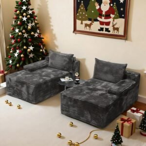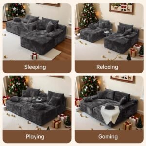 Oversized Sofa Bed Corduroy Recliner with Throw Pillows Armrests Upholstered Comfortable Sleeper Reading Chair for Living Room Bedroom Movie Room Boneless Couch